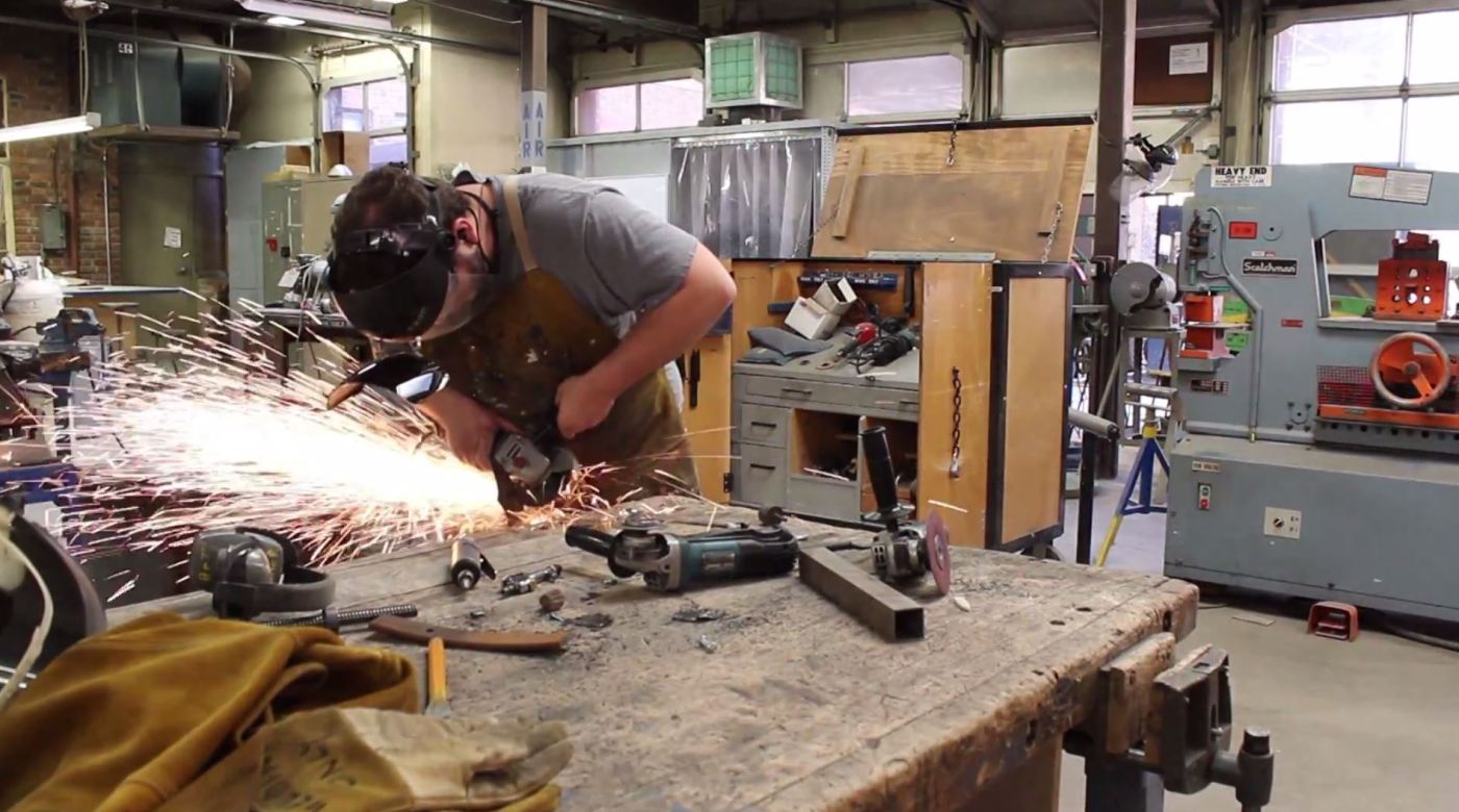 Senior applied computer graphics major Gabe Maddox sketches, grinds and throws his latest project: A batarang.